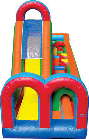 This 2 piece Turbo Rush was split down for those who still want the experience but don't have the space to accommodate the full piece. Great for backyard birthday parties or parties at the parks. Kids of all ages can get their adrenaline rushing running through this incredible challenge! With obstacles to navigate through before climbing to the top of the slide and sliding down to the bottom to finish the course. Don't wait! Reserve our Turbo Rush for your next event . Uses 1 air motor so a 15 amp breaker or a 3000 watt or higher generator is needed to run this.