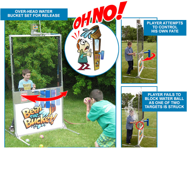 If the player using the blocker can act quickly enough, they can stop the ball from hitting the target. However, should the ball happen to strike a target, a cool, refreshing bucket of water is dumped from above. The bucket then automatically resets and fills with water (takes around 30 seconds to refill), ready for the next defender.